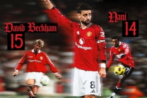 此外,貝克漢姆還將B費的圖片P上曼聯(lián)經(jīng)典的球衣,寫道:新紀(jì)錄!??????