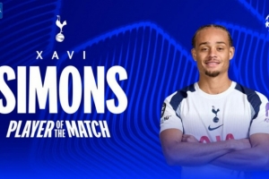 本場(chǎng)比賽哈維·西蒙斯梅開(kāi)二度,賽后當(dāng)選歐冠官方評(píng)選出的本場(chǎng)比賽最佳球員。