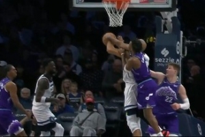 GIF-戈貝爾扣籃被科利爾兇狠犯規(guī) 要發(fā)作被蘭德爾抱住&科利爾一級(jí)惡犯