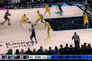 GIF-鏡頭過(guò)來(lái)東契奇倒在地上,鮑威爾上籃命中,湖人暫停,東契奇一瘸一拐的