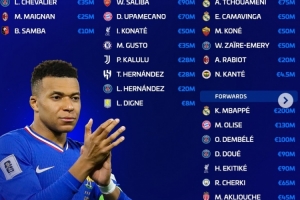 體育資訊3月20日訊 近日,德轉(zhuǎn)網(wǎng)站更新了新一期法國(guó)國(guó)家隊(duì)球員身價(jià),其中姆巴佩以2億歐身價(jià)高居首位,奧利塞以1.3億歐位居次席。