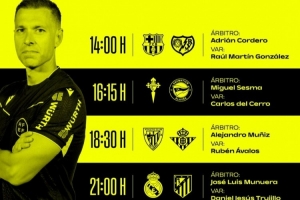 體育資訊3月21日訊 本周末,西甲第29輪全面開戰(zhàn),西班牙足協(xié)官方公布了本輪比賽部分場次的裁判安排,其中,穆努埃拉執(zhí)法馬德里德比關(guān)鍵戰(zhàn),科爾德羅主裁巴薩主場迎戰(zhàn)巴列卡諾。