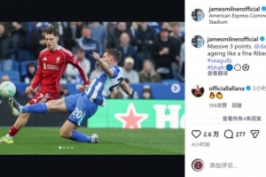 布萊頓中場米爾納賽后在社交媒體上寫道:“非常重要的三分,維爾貝克就像一瓶陳年佳釀(Ribena黑加侖果汁),越老越香?!?/p>