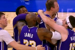 GIF-魔術(shù)最后扔一個不中~??!湖人眾將圍著肯納德瘋狂慶祝~?。?!