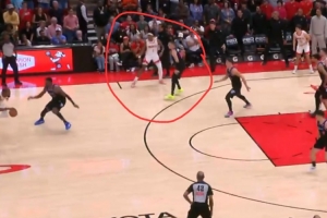火箭主場(chǎng)123-122險(xiǎn)勝熱火,最后一攻阿門補(bǔ)籃絕殺,在他發(fā)邊線球之后是希羅和他對(duì)位,但希羅注意力一直在持球的杜蘭特這邊,完全漏掉了偷偷跑到籃下的阿門。