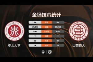 末節(jié)比賽,中北大學(xué)繼續(xù)試投三分球,王嘉輝終于命中第二記遠(yuǎn)投,但這也是中北大學(xué)前四分鐘的唯一進(jìn)球,山西師大又一次完成反超,雙方一直將比賽懸念打到最后,關(guān)鍵時刻范繼昂和胡遠(yuǎn)航連續(xù)得分,李子超兩罰全中,賈保成搶兩分不中,最終中北大學(xué)66-64險勝山西師大迎開門紅。