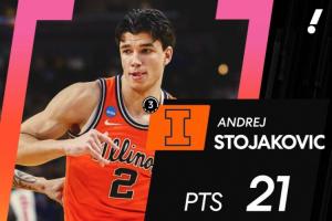 伊利諾伊大學(xué)轉(zhuǎn)校生、佩賈兒子安德烈·斯托賈科維奇本場比賽發(fā)揮出色,他連續(xù)沖擊內(nèi)線取分,接連上演精彩暴扣,替補出戰(zhàn)26分鐘,12投7中,三分2中0,罰球9中7,砍下21分4籃板1助攻1蓋帽。