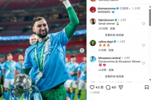 多納魯馬也收獲個(gè)人曼城生涯首個(gè)冠軍,賽后他也在社媒曬出自己與冠軍獎(jiǎng)杯慶祝合影,配文寫(xiě)道:“冠軍!”