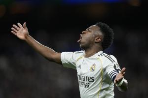 據(jù)媒體統(tǒng)計,維尼修斯對陣曼城、馬競都梅開二度,職業(yè)生涯首次連續(xù)2場比賽梅開二度。