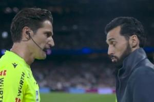 轉(zhuǎn)播方DAZN捕捉到了賽后皇馬主帥阿韋洛亞走上前向主裁判表達(dá)不滿,二人之間的對話。