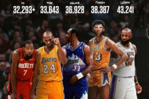 排在榜單下一位的是科比·布萊恩特,他領(lǐng)先杜蘭特1349分。由于常規(guī)賽只剩下12場比賽,這一壯舉不得不等到下個(gè)賽季。
