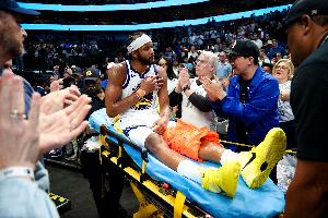 賽后勇士記者Nick Friedell報(bào)道,穆迪目前已經(jīng)從X光檢查室中出來,膝蓋上戴著厚厚的護(hù)具,在隊(duì)醫(yī)的陪同下拄拐一瘸一拐返回了更衣室。